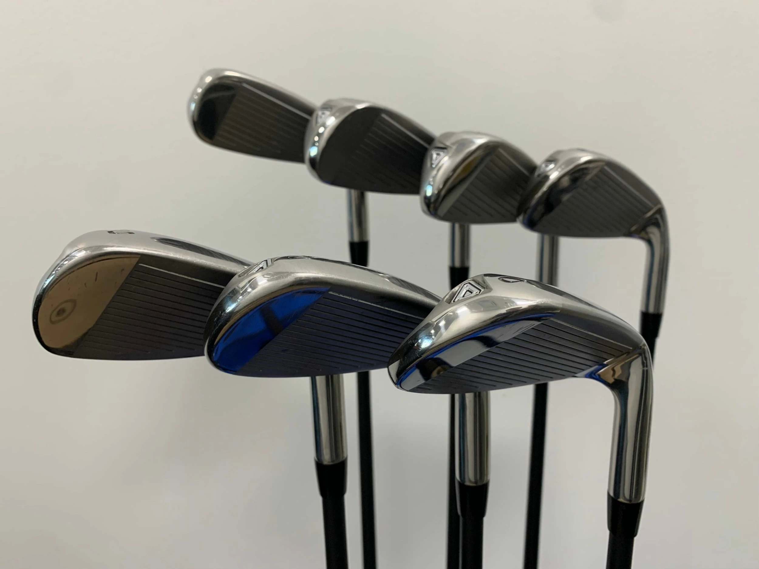 Very Good Condition – Iron set shows light wear from being used 12-15 rounds. Very light surface scratches on soles and faces of clubs.