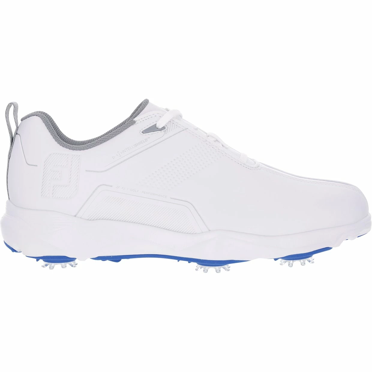 The FootJoy eCOMFORT golf shoe is built for comfort. It features a lightweight, responsive midsole that keeps your feet cushioned from the first tee to the 18th green. The DuraMax rubber outsole is equipped with 6 cleats to keep you stable and planted throughout each golf swing. The upper is waterproof and comes with a 1 year waterproof warranty.