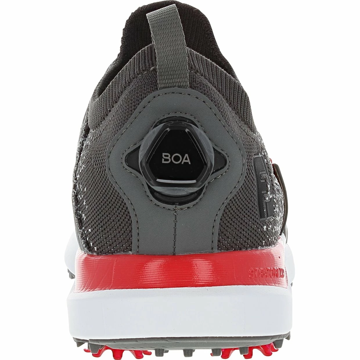 FJ’s HyperFlex BOA golf shoe is designed to move with you. The waterproof upper features engineered mesh with TPU yarns for enhanced structure and support. It also features the BOA Fit System, offering precise fit with the turn of a dial. Comfort and support is provided with a moulded high density EVA FitBed and a Stratofoam midsole. The Optiflex outsole enhances range of motion and flexibility. It features Pulsar LP cleats by Softspikes, offering exceptional grip.