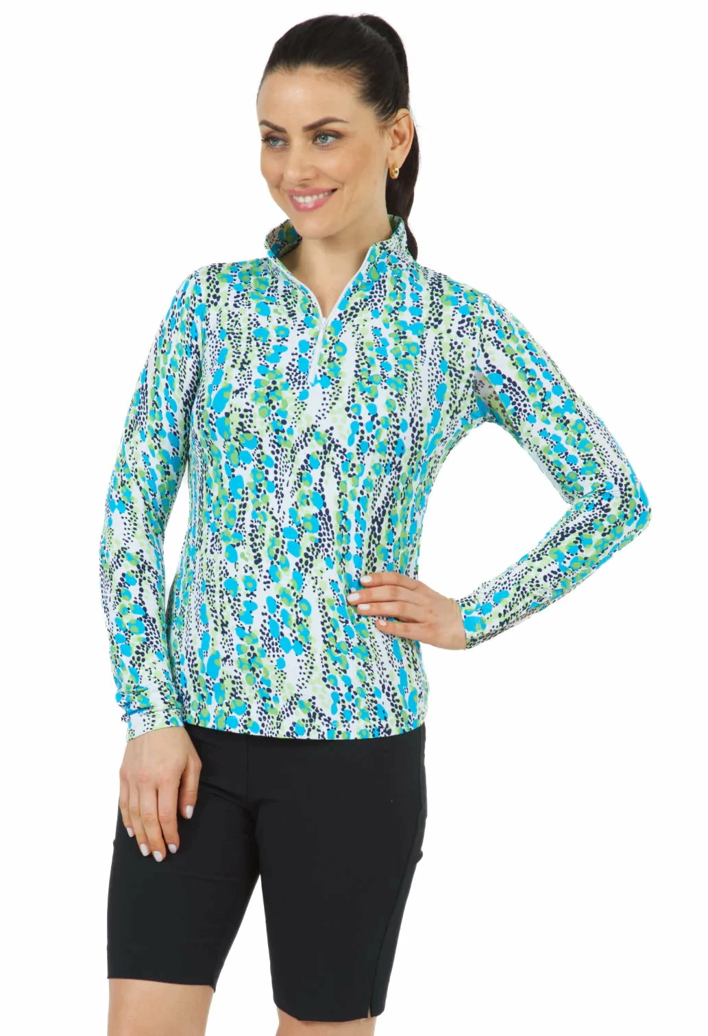 Ibkul Women’s Kamila Print Long Sleeve Mock Neck Top – 10262