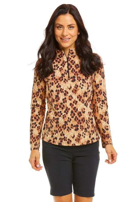 IBKUL Women’s Le Leopard Print Long Sleeve Mock Top – 10752