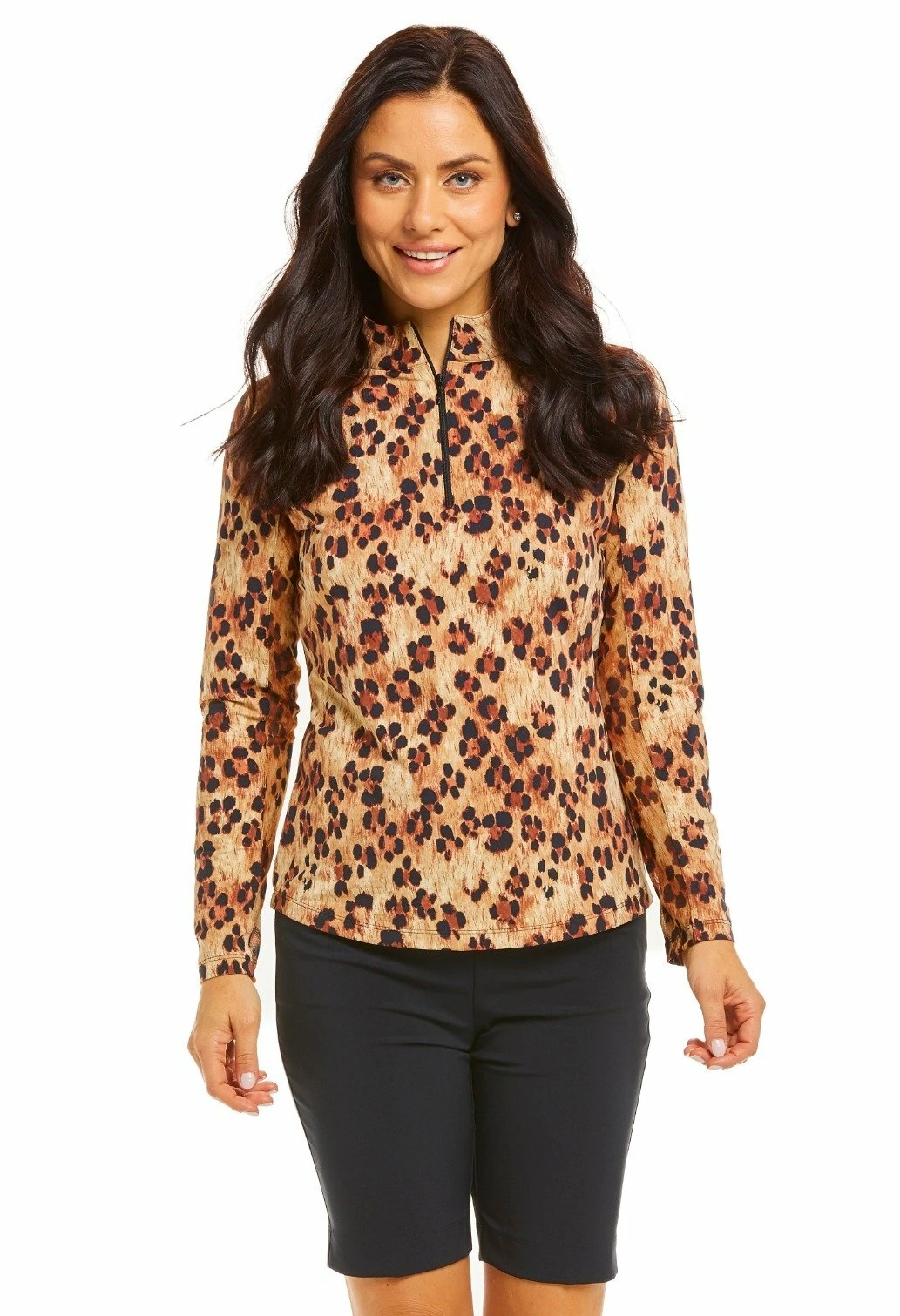 Be the first to review “IBKUL Women’s Le Leopard Print Long Sleeve Mock Top – 10752” Cancel reply
