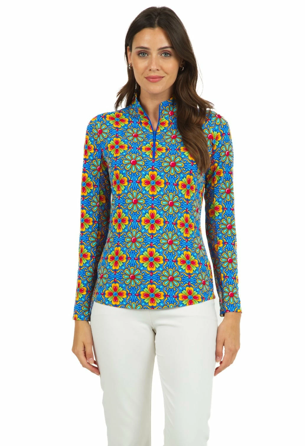 IBKUL Women’s Scarlet Print Long Sleeve Zip Mock Neck – 10185