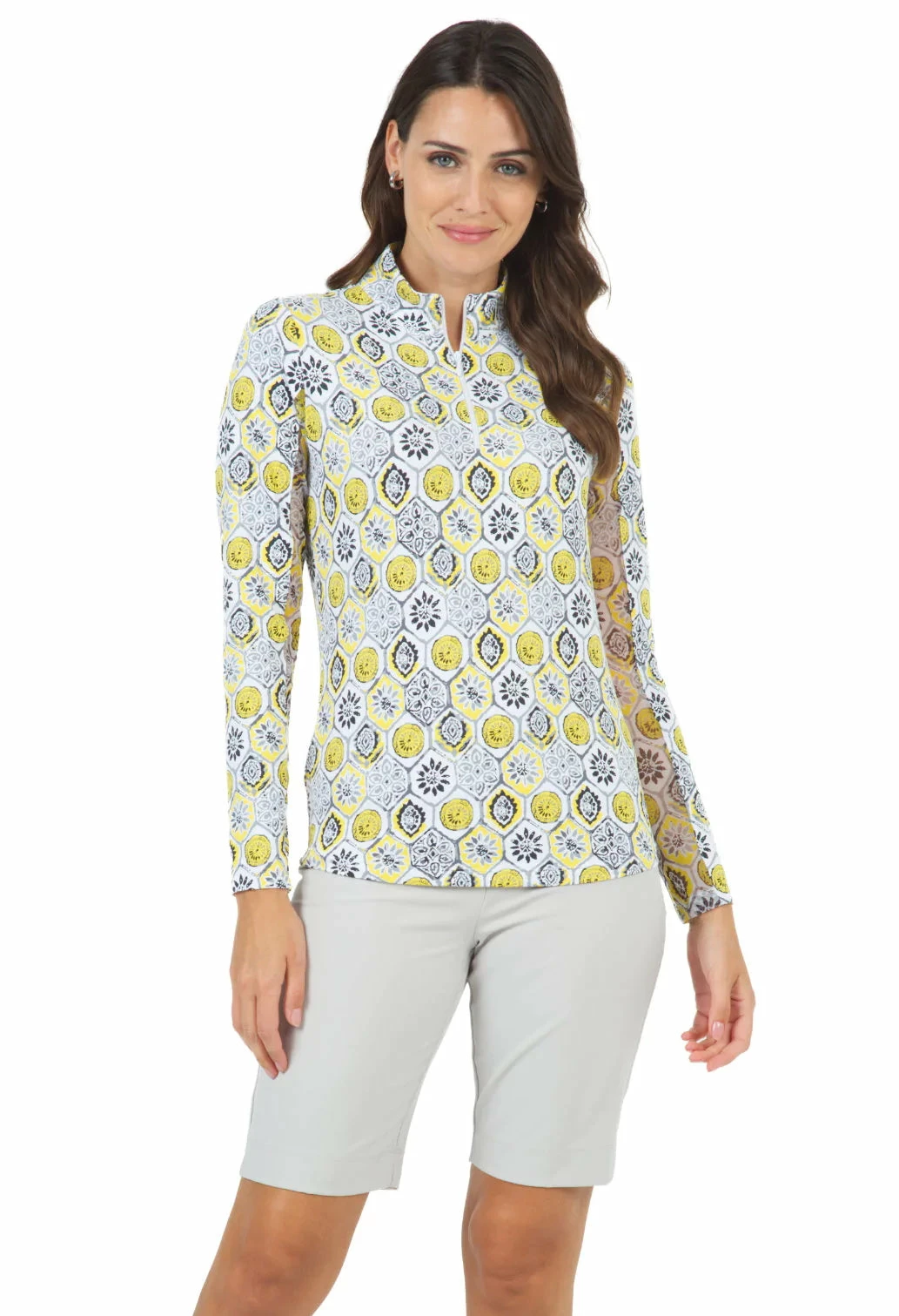Ibkul Women’s Terra Print Long Sleeve Mock Neck Top – 10264