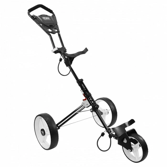 The IZZO ROVER II Pushcart is ease redefined. Built to keep the weekend warrior in mind, the cart stores easily in any trunk and sets up in seconds. The durable aluminum frame can handle all terrain and weather while carrying any size golf bag with ease. Get ready to tackle the course with any of our 4-wheel color designs at an extremely affordable price.