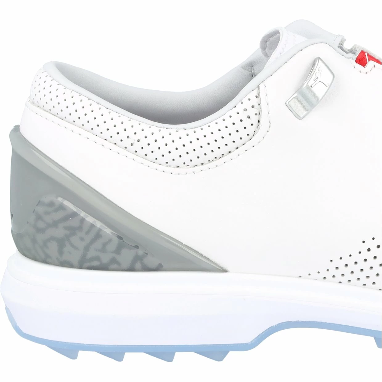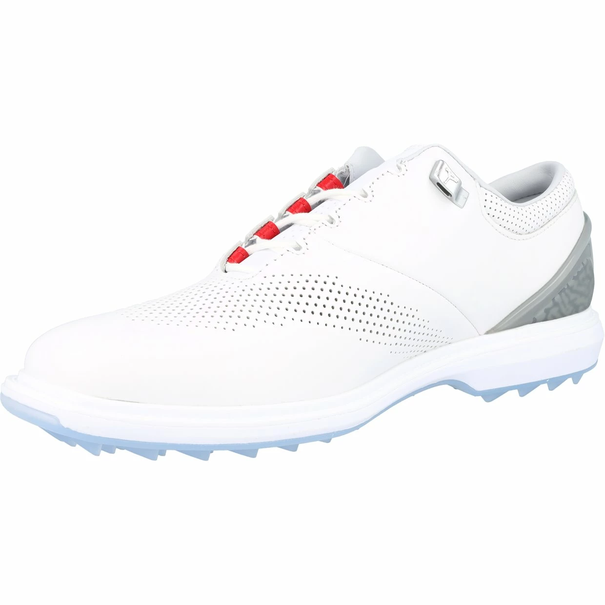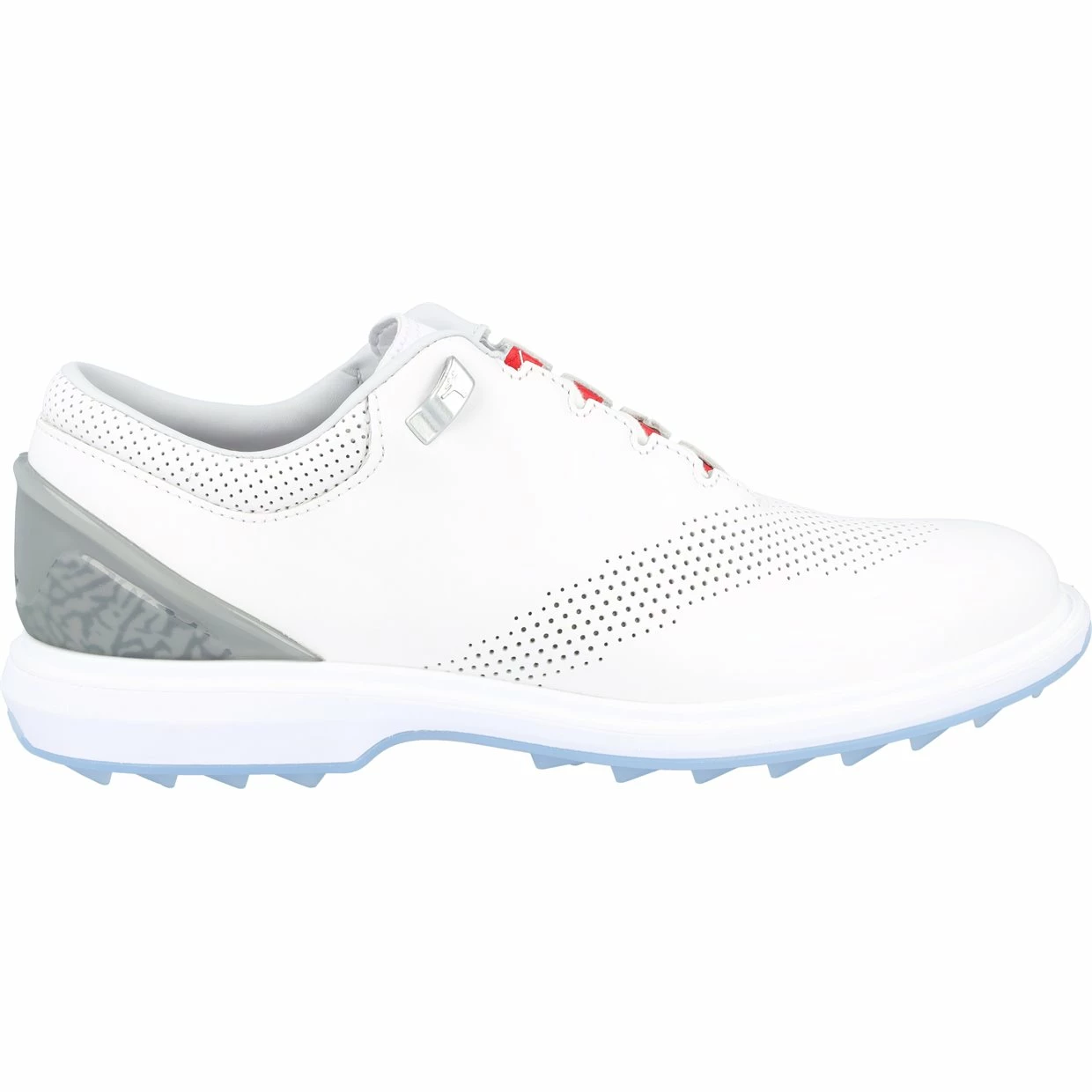 Nike’s Jordan ADG 4 is designed for ALL-DAY GOLF. It infuses an incredibly classic silhouette with retro Jordan flavor, displaying Jordan branding and the iconic elephant print on the heel. The golf shoe features a full-grain leather upper that is soft and supple and a Nike React foam midsole that is lightweight, durable, and delivers a smooth, responsive ride. The rubber spikeless outsole has an integrated traction pattern that perfectly pairs the grip you need with the versatility and comfort you want.