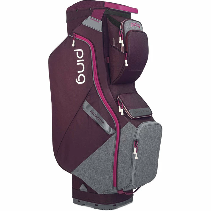 It already set itself apart as a super-light cart bag, and the re-designed Traverse weighs in a half-pound lighter at a trim 5 ½ pounds. It’s offered in fun new color combinations, too, plus it features two new outer magnetic slip pockets among 11 total, including full-length apparel pockets and a velour-lined valuables pocket. Another cool feature: the insulated cooler pocket. Keeps your set tidy in the padded 14-way top with two putter wells.
