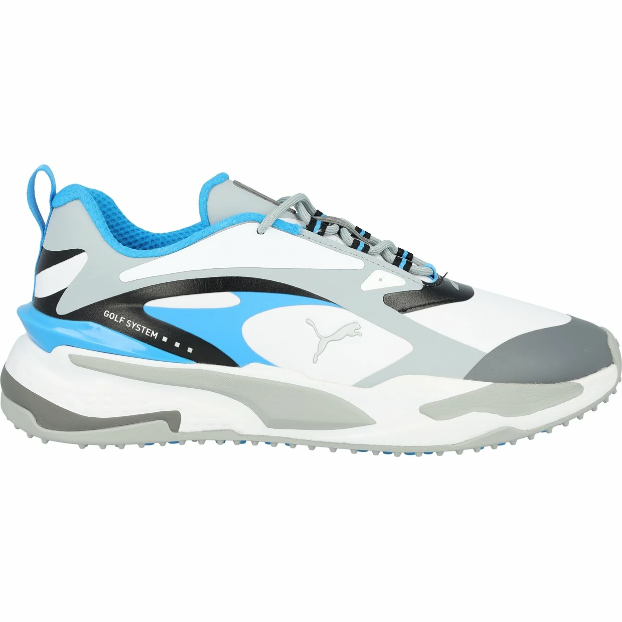Puma’s GS Fast features a spikeless outsole with carbon rubber, offering versatile traction on or off the golf course. The bottom of the shoe displays “Golf” wordmark and the PUMA cat. The FusionFame midsole provides support and a cushioned ride while the SoftFoam sockliner is equipped with two unique layers of cushioning as well. The microfiber leather upper is waterproof with seam sealed construction and welded on TPU layers. A 1 year waterproof warranty is included.