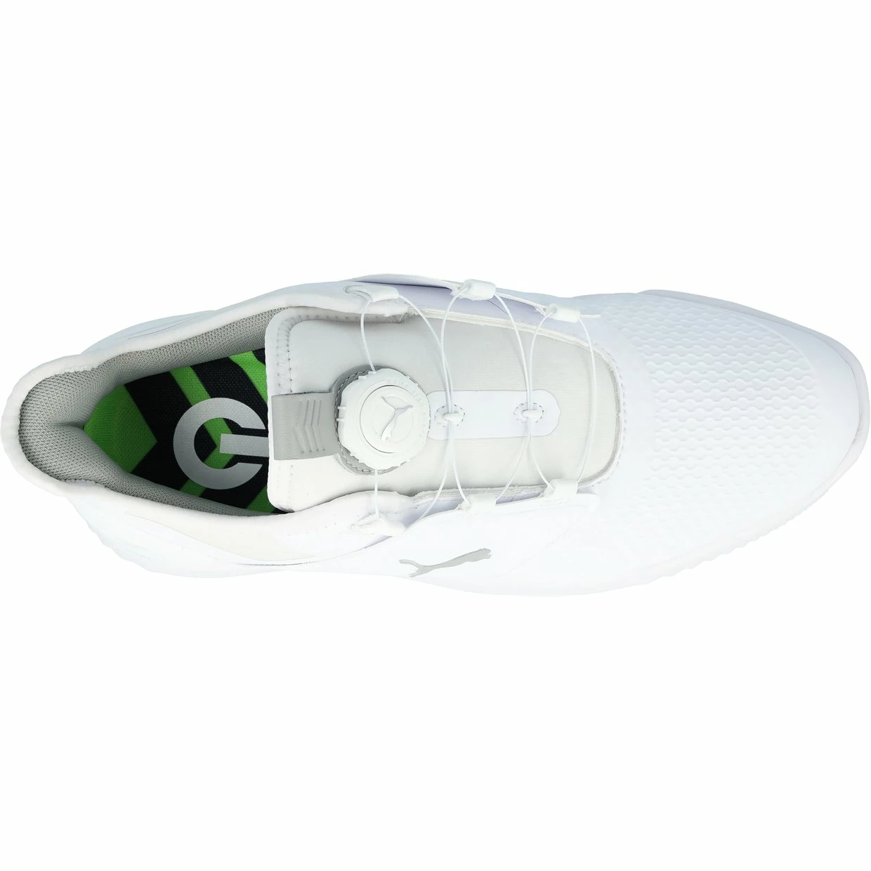 Grip the ground no matter the lie in the Puma IGNITE ELEVATE golf shoe. It is built for strength and stability, featuring PWRFRAME and PWRCAGE technology. PWRFrame targets high stress areas on the upper foot, providing support with a lightweight TPU frame while PWRCage wraps the medial and lateral side of the shoe for stability and support as well. In addition, Elevate features the Disc System, providing comfort and a stable fit with the twist of a dial.